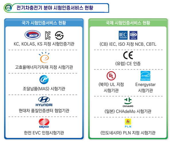 KTC는 전기차 관련 정보통신, 전자장비, 모터, 배터리, 충전기 등의 분야에 핵심 시험평가 역량을 갖추고 있고, 특히 전기차 충전기 분야는 미국 UL Solutions, 유럽 VDE, TUV Rheinland, 일본 JET, COSMOS, UL Japan, 인도네시아 PLN 국영전력공사 등으로부터 시험 기관으로 지정받아 국내 기업의 미주, 유럽, 아시아 등 전 세계 수출을 지원하고 있다.