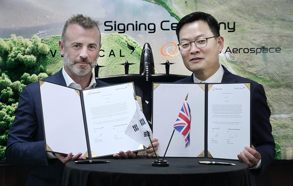 [기계신문] 한화에어로스페이스는 지난 19일(현지시간) 프랑스 파리 에어쇼에서 글로벌 UAM(도심항공교통) 전문기업인 영국 버티컬 에어로스페이스(Vertical Aerospace, 이하 VA)와 UAM 개발을 위한 합의각서(MOA)를 체결했다고 밝혔다.