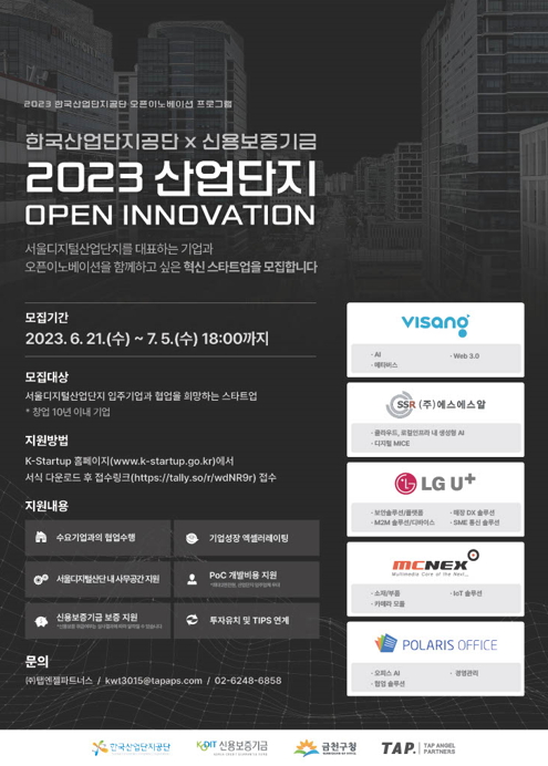 ‘2023년 산업단지 오픈이노베이션’은 한국산업단지공단과 신용보증기금이 공동으로 산업단지 내 우수한 역량과 인프라를 갖춘 입주기업과 혁신기술을 보유한 스타트업을 매칭해 동반성장을 지원하는 프로그램이다.