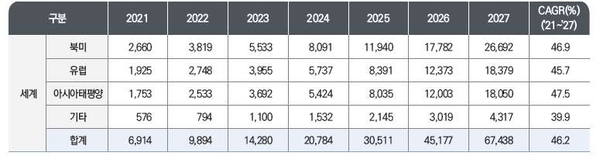 세계 의료 AI산업은 2027년 시장규모가 약 674억 달러로 성장할 것으로 전망되는 고부가가치 산업으로, 주요 기술 선진국들은 해당 산업을 국가 전략산업으로 육성하기 위해 역량을 집중하고 있다. 특히, 의료기기 산업이 AI와 접목되면서 디지털 치료제, 헬스케어기기 등 다양한 형태의 융·복합 제품이 시장에 출시되고 있다.