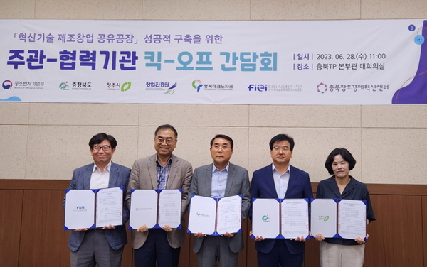 [기계신문] 충청북도와 청주시는 중소벤처기업부와 ‘혁신기술 제조창업 공유공장 구축사업(이하 공유공장)’ 추진을 위한 협약을 완료하고, 성공적인 사업 추진을 위해 주관-협력기관 간담회를 28일 충북테크노파크에서 개최했다.