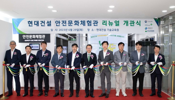[기계신문] 현대건설이 지난 29일(목) 서울 대림동 현대건설 기술교육원 내 안전문화체험관에서 리뉴얼 개관식을 개최했다. 행사에는 현대건설 황준하 CSO(안전보건최고경영자)와 김준호 노조위원장, 영등포구 최호권 구청장, 고용노동부 정병진 서울남부지청장, 한국산업안전보건공단 고광재 서울광역본부장 등 주요 관계자가 참석했다.