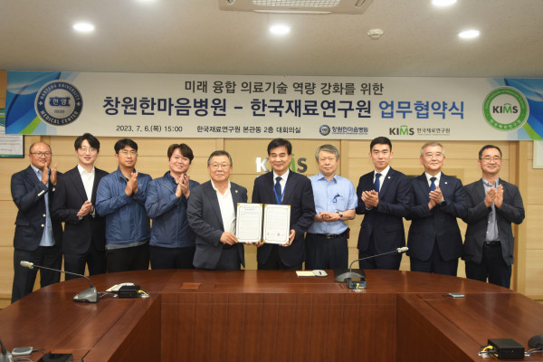 [기계신문] 한국재료연구원(KIMS)은 지난 6일 경남 창원 본원에서 창원한마음병원과 신의료기술 개발과 보건의료서비스 질 향상을 약속하는 업무협약을 체결했다.