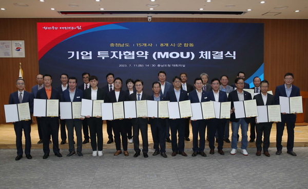 [기계신문] 충남도는 11일 김태흠 지사와 신동헌 천안시 부시장 등 8개 시군 단체장·부단체장, 이종일 정수이앤씨 대표이사를 비롯한 15개 기업 대표가 투자협약을 체결했다고 밝혔다.