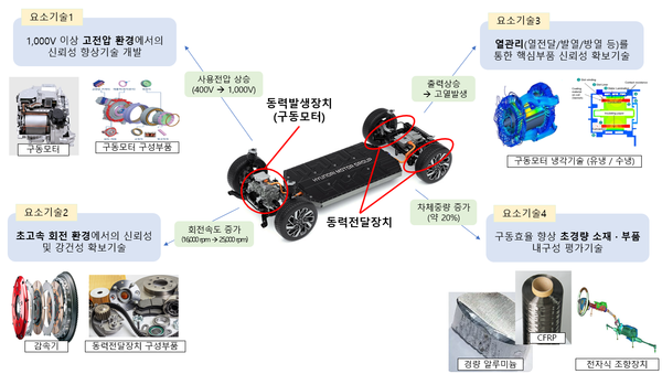 이에 전기차의 동력발생 및 전달장치에서 발생하는 주요 고장문제 해결을 위한 신뢰성 요소기술 개발 및 기업지원 기반을 구축힌다. 총 9종 9대(77억 원)의 연구시설·장비 구축 및 이를 활용한 신뢰성 요소기술 개발로 기존 내연기관 부품·소재 기업의 산업전환을 지원한다.