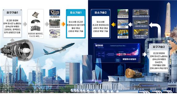 최근 발전에너지, 항공 등이 미래 산업분야로 부각됨에 따라, 초고온 노출 환경에서 활용되는 초고온 고강도·고내부식 금속소재에 대한 수요가 증가하고 있다.