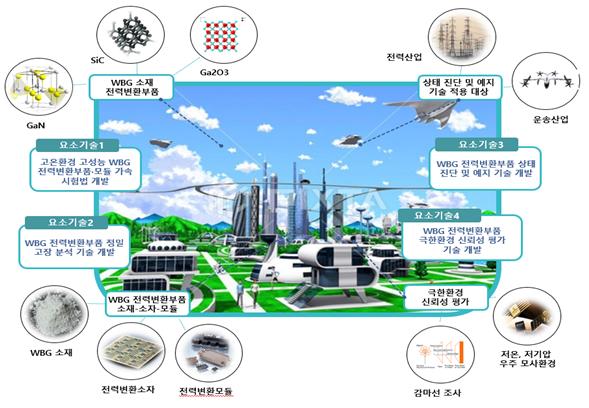 전력변환부품은 전력을 사용하는 다양한 산업에 필요한 핵심부품으로, 소재·부품 시장 안정화 및 신규 시장 선점을 위한 제품 특성 검증·수명·신뢰성 확보가 필요하다. 또, 기술 경쟁 대응을 위해 고온·진동·EMC 등 스트레스 환경별 고장 발생 원인 분석을 통한 신뢰성 핵심기술 개발이 필요하다.