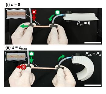 또, 연구팀은 튜브에 감겨있는 실의 구조나 개수를 정밀하게 프로그래밍해 공기 유입과 유출을 다양하게 조절할 수 있음을 확인했다. 튜브 끝단에 동일한 힘을 가해도, 실이 감긴 모양과 개수에 따라 구동부를 상황에 알맞게 조절할 수 있다.