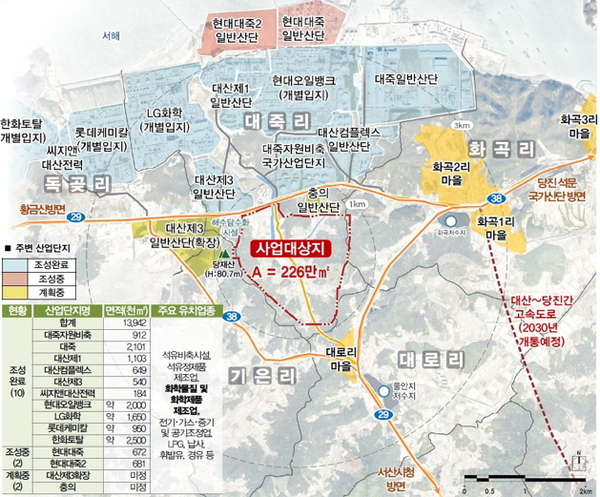 전국 3대 석유화학단지인 대산에는 현대오일뱅크, LG화학, 롯데케미칼, 한화토탈, KCC, 한국석유공사 및 60여 중소기업이 입주한 상태로, 그동안 40여 개 기업이 대산 석유화학단지 내 입주를 희망하면서 추가 산업단지 개발이 필요한 상황이었다.