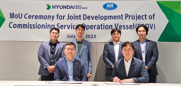[기계신문] 현대미포조선은 한국선급(KR)과 지난 24일 경기도 성남시 HD현대 글로벌 R&D센터에서 ‘해상풍력유지보수 지원선(CSOV, Commissioning Service Operation Vessel) 기본설계 공동개발’을 위한 업무협약을 체결했다.
