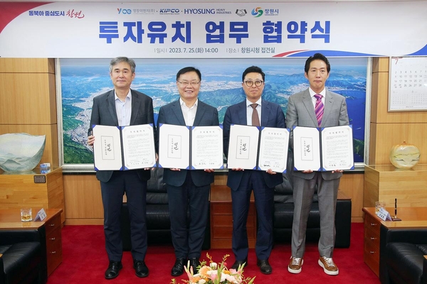 [기계신문] 창원시는 지난 25일 영창이엔지㈜, ㈜키프코전자항공, 효성중공업㈜과 투자금액 318.5억 원 및 상시고용 112명 규모의 합동 투자협약을 체결했다고 밝혔다.