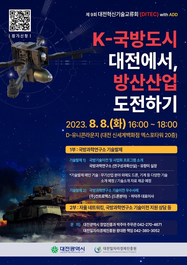 특히 지역 기업인 ㈜컨트로맥스가 국방과학연구소의 국방드론 기술을 이전받아 성공한 사례를 발표하는데, 일반 기업들도 방산산업으로 전환할 수 있다는 자신감과 비전을 공유하는 시간이 될 것으로 보인다.