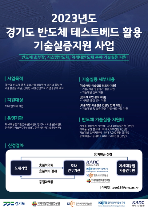 지원 예산은 2023년부터 2025년까지 총 7억 500만 원이며, 경기도와 융기원은 반도체 기업의 기술개발과 실증 지원을 목적으로 4개 테스트베드 운영기관과 협의체를 구성했다.
