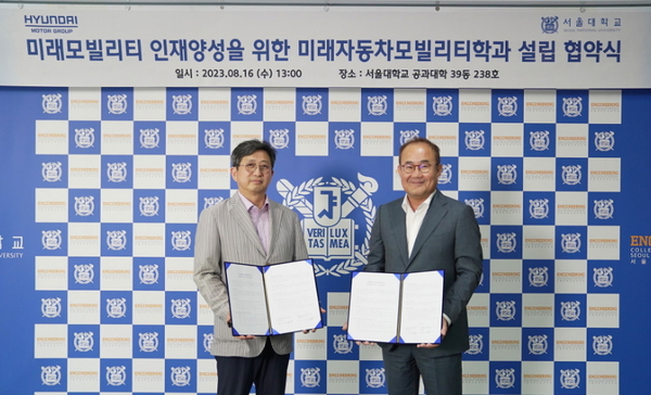 김성규 서울대 교육부총장은 “미래자동차모빌리티학과를 통해 모빌리티 인재 육성 생태계를 조성하고, 학생들이 세계적인 수준의 연구원으로 성장할 수 있도록 현대자동차와 함께 노력할 예정”이라고 밝혔다.