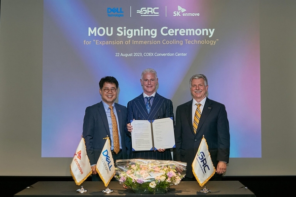 [기계신문] SK엔무브는 지난 22일 미국 PC 제조 및 IT 솔루션 기업 델 테크놀로지스(Dell Technologies), 미국 데이터센터 액침냉각 시스템 전문기업 GRC와 ‘데이터센터 액침냉각 사업 추진을 위한 업무협약(MOU)’을 체결했다.