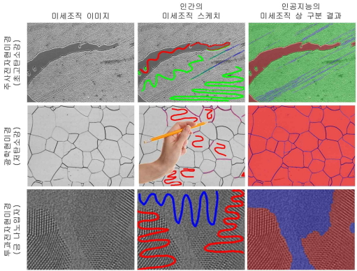 현미경 이미징 시스템은 나노(nano)에서 메소(meso) 스케일에 이르기까지 다양한 수준에서 재료 구조의 정보를 시각화해 제공한다. 미세조직의 정량 분석은 이러한 현미경 이미지로부터 미세조직 상을 구분해 정량적인 정보를 추출하는 과정이다. 하지만 미세조직의 복잡성과 다양성으로 인해 인간 또는 인공지능이 이를 단독으로 수행하기엔 지금까지 많은 한계가 있었다.