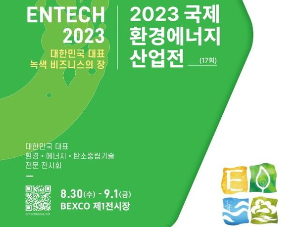 [기계신문] ‘2023 국제환경에너지산업전(ENTECH)’이 ‘대한민국 대표 녹색비즈니스의 장’을 슬로건으로 오는 8월 30일부터 9월 1일까지 3일간 부산 벡스코 제1전시장에서 개최된다.