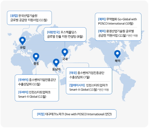 이를 해결하기 위해 포스코인터내셔널은 크게 ▲현지 마케팅 지원 ▲상담컨설팅 지원 ▲자금 지원에 중점을 두고 중소·벤처기업을 위한 체계적인 지원을 펼쳐오고 있다.
