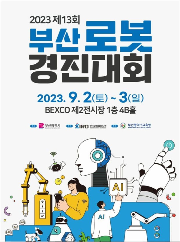 [기계신문] ‘2023 제13회 부산로봇경진대회’가 9월 2일(토)부터 3일(일)까지 벡스코에서 개최된다. 2010년 제1회 개최 이후 13회째를 맞이하는 이번 대회는 부산시가 주최하고 한국로봇융합연구원이 주관하며 부산시교육청이 후원한다.