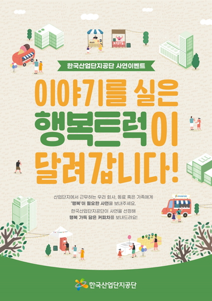 동료를 위한 응원, 기업인이 직원들에게 보내는 감사 표현, 산업단지에서 근무하는 가족을 위한 감동 선물 등 산업단지 현장의 근로자들에 관한 이야기를 담은 사연을 접수하면 선정 과정을 통해 총 13곳에 행복트럭이 찾아간다.