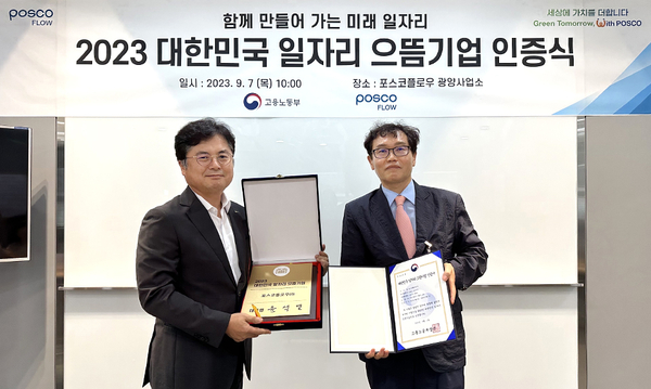 한편, 포스코플로우는 ESG경영 지표 중 ‘고용’인 S영역 성과로 ‘일자리 으뜸기업’으로 선정되어 공로를 인정받아 더욱 의미 있는 성과로 기록되었다.