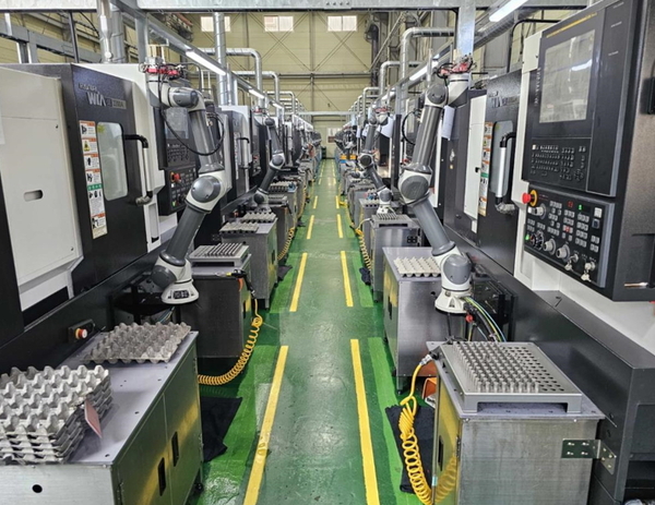 해당 기업은 ㈜STS로보테크로 반도체 장비용 클린 피팅 부품을 생산하는 대표적인 로봇활용 중소기업이다. 국산 CNC 가공장비와 국산(레인보우로보틱스) 협동로봇을 연동한 국내 최대 규모의 로봇협업 가공 자동화공정을 운영하고 있다.