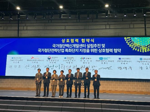 이번 협약에서 각 기관은 인공지능(AI) 기반 국가첨단백신개발센터 설립을 통해 첨단바이오산업의 공동연구체계를 구축하고, 국가첨단전략산업 바이오 분야 특화단지 지정에 상호 협력하기로 했다.