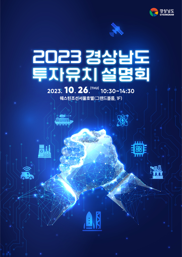 [기계신문] 경상남도가 오는 10월 26일 오전 10시 30분 웨스틴조선서울호텔에서 수도권 소재 잠재투자기업 CEO 등 300여 명을 대상으로 ‘2023 경상남도 투자유치 설명회’를 개최한다.