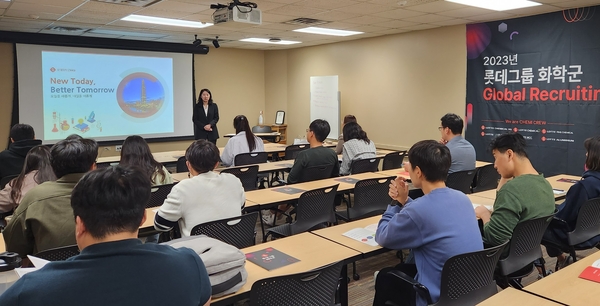 [기계신문] 롯데케미칼과 롯데정밀화학은 지난 9월 3일부터 8일까지 황용석 롯데그룹 화학군 HQ 인사혁신본부장(CHO), 최영헌 롯데케미칼 이노베이션센터장 등 인사 및 연구개발 임직원들이 직접 미국 14개 대학을 찾아 현지 채용 설명회를 개최했다고 밝혔다.