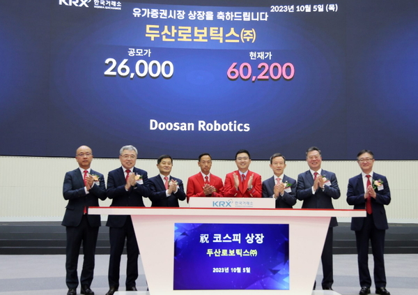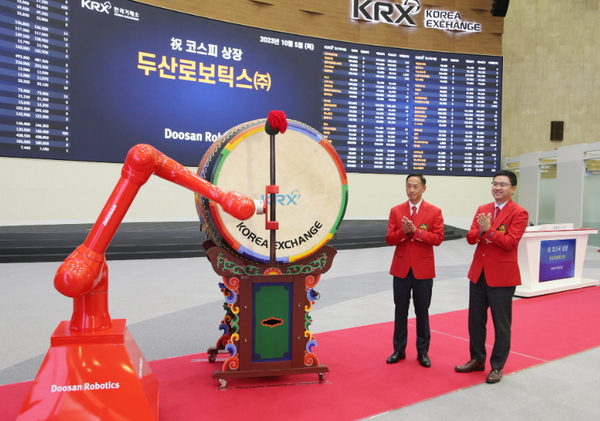 이어 상장 계약서에 서명하고, 상장기념패 전달식을 가진 뒤 두산로보틱스 박인원 대표와 류정훈 대표가 두산로보틱스의 거래 시작을 알리는 매매개시 벨을 누르는 것으로 행사가 마무리됐다.
