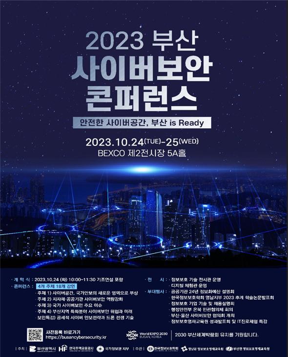 전시·체험 행사로는 ▲정보보호 기업 및 공공기관 기술 전시관과 ▲디지털 체험관을 이틀간 운영하고, 아울러 2030 부산세계박람회 홍보부스도 특별 운영해 부산지역 정보보호산업 활성화와 2030 부산세계박람회 유치 홍보에도 적극 나설 예정이다.