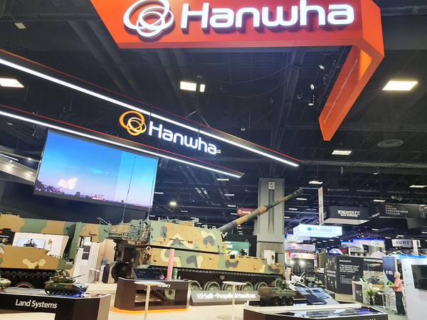 한화에어로스페이스는 232 ㎡ 규모의 전시관을 설치하고 미 육군을 대상으로 ▶전 세계 시장점유율 1위인 K9 자주포와 ▶포탄 자동이송장치가 있는 K56 탄약운반차 ▶포탄의 핵심 부품인 모듈화 장약(MCS) 및 신관 등 자주포 패키지를 선보였다. 미군이 필요로 하는 기술 솔루션 및 제품을 제공하고, 육군의 자주포 현대화 사업에도 참여해 북미 지역의 방산 공급망에 진입하겠다는 전략이다.