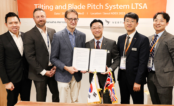 [기계신문] 한화에어로스페이스가 지난 18일 국내 최대 항공우주·방위산업 전시회 ‘서울 ADEX 2023’에서 영국 도심항공교통(UAM) 전문기업 버티컬에어로스페이스(VA)와 약 2,356억 원의 부품 계약을 체결했다.