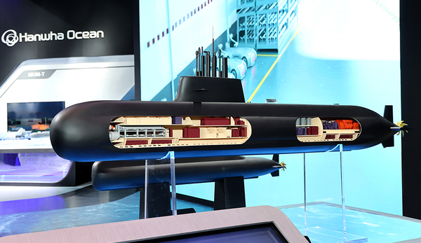 방산분야에서는 전 세계에서 가장 진화된 디젤잠수함으로 알려진 3,000톤급 장보고-III Batch-II 잠수함을 선보인다. 한화오션이 개발한 공기불요 추진체계(AIP)와 한화에어로스페이스의 리튬이온전지를 결합한 하이브리드 잠수함으로, 디젤잠수함으로는 세계 최장의 잠항 능력을 보유하고 있다.