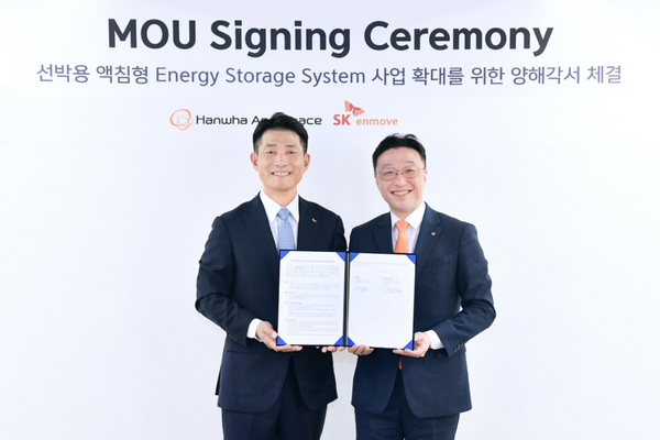 이에 따라 SK엔무브는 고품질 윤활기유를 활용한 액침냉각 시스템 전용 플루이드(Fluids)를, 한화에어로스페이스는 리튬전지체계 기술을 바탕으로 선박용 ESS 시스템을 맡아 기술 개발에 나선다. 또, 선박용 ESS 시장 활성화를 위한 홍보 활동을 공동 추진해 글로벌 고객을 확보할 예정이다.