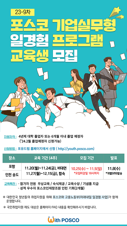 교육은 포스코 포유드림 홈페이지에서 신청할 수 있으며 합격자에게는 11월 8일 수요일 개별 문자를 통해 공지된다.