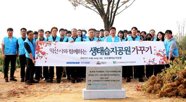 [기계신문] 두산퓨얼셀은 지난 26일 전라북도 익산시에 위치한 두산퓨얼셀 본사 인근 유천생태습지공원에서 ‘생태습지공원 가꾸기’ 임직원 사회공헌활동을 진행했다고 밝혔다.