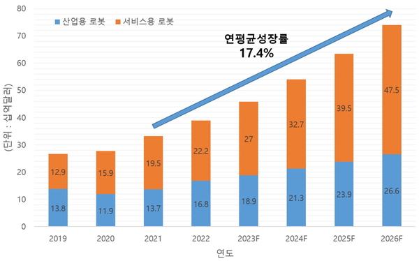 보고서는 제조업 리쇼어링 추세 확산과 디지털전환 가속화로 인해 산업·서비스용 로봇 시장이 급격히 성장하고 있으며, 이에 적시 대응하기 위한 국내 정책 마련이 시급하다고 분석했다.