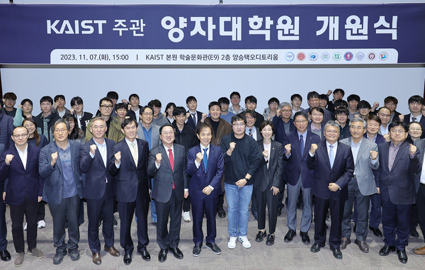 이날 행사에는 이광형 한국과학기술원 총장과 이장우 대전시장, 조성경 과학기술정보통신부 제1차관을 비롯해 관련 대학 및 기관 관계자 등 50명이 참석하여 현판 전달식을 갖고 양자대학원의 개원을 축하했다.