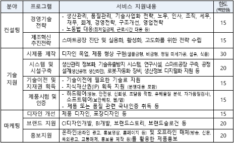 지역특화 프로젝트 ‘레전드 50+’와 연계해 프로젝트 참여 기업을 대상으로 심사를 간소화하는 등 신속하게 지원하며, 지역 중소기업 간 협업을 촉진하기 위한 융복합 컨설팅도 지원할 계획이다.