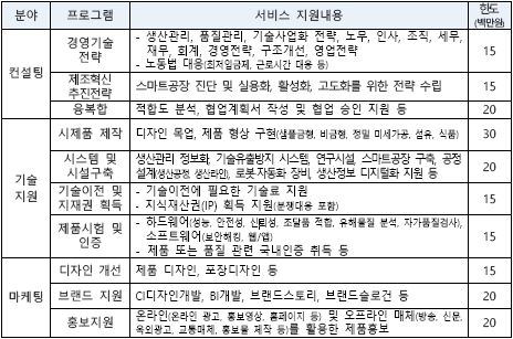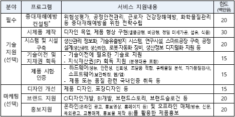아울러 중소기업 기본법령에 따른 주업종 판단 기준만을 적용하고 제품 매출액 비율 50% 기준은 폐지한다. 예컨대, 제품 매출(원재료를 구입해 만들어 판매) 50억 원, 상품 매출(완성된 제품을 구매해 판매) 40억 원, 기타 매출 30억 원인 A제조업체의 경우 기존에는 제품 매출액 비율이 50% 미만이라 이용권을 지원받을 수 없었으나, 내년부터는 가능하다.
