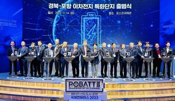 [기계신문] 경상북도는 14일(화) 포항 포스코 국제관 국제회의장에서 ‘배터리 기술 초격차 선도도시 포항 POBATT 2023’ 컨퍼런스를 개최했다. 이날 컨퍼런스에서는 사전 행사로 경북도-포항시-이차전지 선도기업-연구기관 간 ‘이차전지 특화단지 추진단 출범식’이 진행됐다.