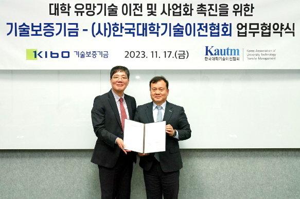 [기계신문] 기술보증기금(이하 ‘기보’)은 (사)한국대학기술이전협회(KAUTM)와 17일(금) 서울 중구 소재 비즈허브 서울센터에서 ‘대학 유망기술 이전 및 중소기업 개방형 기술혁신 촉진을 위한 업무협약’을 체결했다.