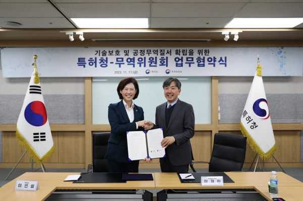 [기계신문] 특허청과 무역위원회가 11월 17일(금) 특허청 서울사무소에서 ‘기술보호 및 공정무역질서 확립을 위한 업무협약’을 체결했다.
