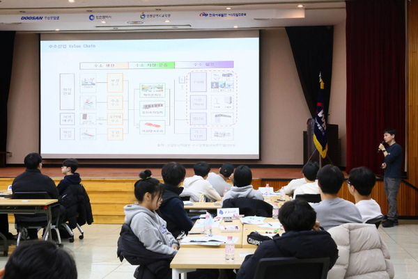 두산퓨얼셀은 학생들이 수소연료전지의 안전성과 사회적 가치에 대해 올바르게 인식하고, 수소산업에 대한 흥미를 느낄 수 있도록 강의 내용을 구성했다.