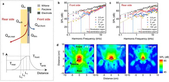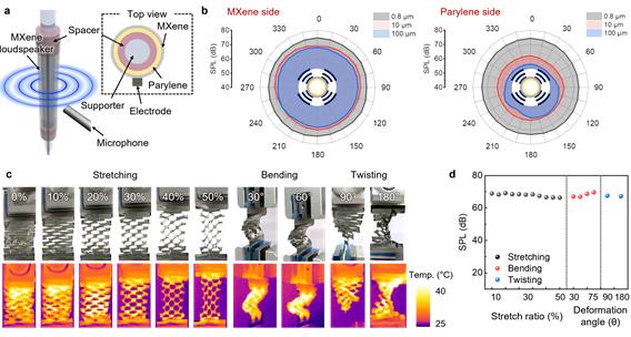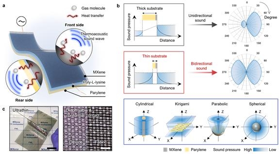 연구팀은 각종 센서나 반도체 등 활용도가 높은 평면구조 나노물질인 맥신(MXene)을 활용했다. 맥신 전도체의 면적당 열용량과 고분자 코팅 소재인 패럴린 기판의 열효율을 제어했다. 높은 음압 레벨(SPL) 출력(15 kHz에서 74.5 dB)이나 14일 간의 소리 성능 테스트에서도 높은 안정성을 보였다.