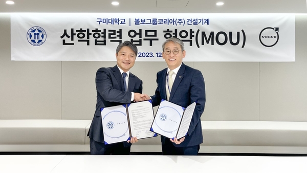 [기계신문] 볼보그룹코리아는 지난 11일 구미대학교와 건설기계 정비 기술인재 양성을 위한 산학협력을 강화하는 업무협약을 체결했다고 밝혔다. 이번 산학협력을 맺는 구미대학교 특수건설기계과는 국내에서 유일하게 건설기계 전문 인력을 양성하는 특성화 학과다.