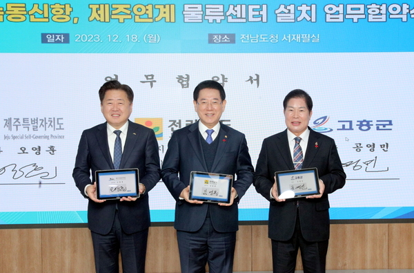 [기계신문] 전라남도는 18일(월) 제주특별자치도, 고흥군과 함께 고흥 녹동신항에 제주도와 내륙 간 물류처리 거점을 확보해 제주도 생산품을 보관하고 안정적으로 공급하기 위한 업무협약을 체결했다.