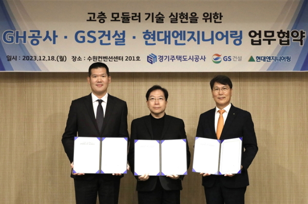 [기계신문] 현대엔지니어링은 지난 18일(월) 경기주택도시공사(GH), GS건설과 고층 모듈러 기술 실현을 위한 업무협약을 체결했다고 밝혔다.