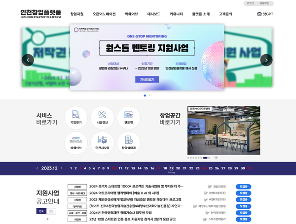 인천시는 그간 운영을 통해 부족한 점을 보완하고, 기능을 추가한 고도화 용역을 거쳐 개편한 창업플랫폼을 오는 12월 26일부터 정식 오픈할 예정이다.